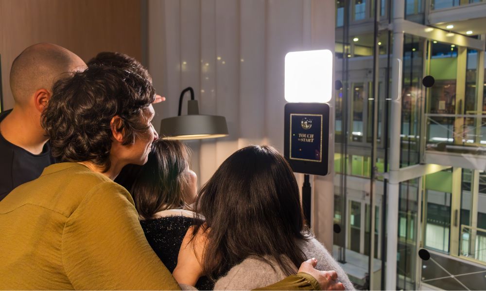 Die pixolo Fotobox unterstützt Gäste dabei, sich vor der Kamera wohler zu fühlen. Digitale Hintergründe und Props erleichtern den Einstieg und sorgen dafür, dass Fotos harmonisch wirken.