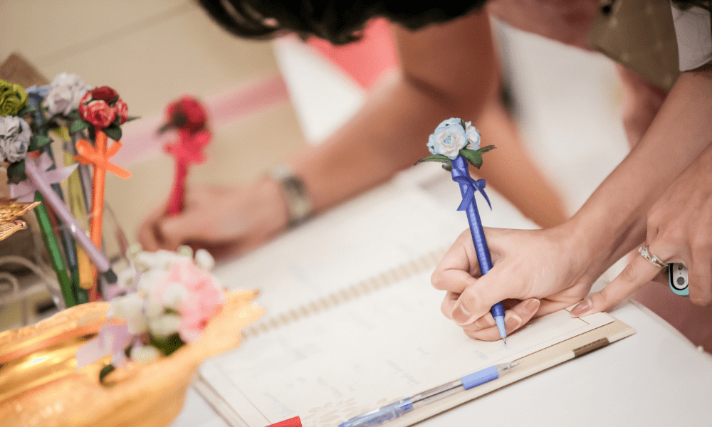- Während des Events schreiben sie persönliche Nachrichten in das Gästebuch oder auf vorbereitete Seiten