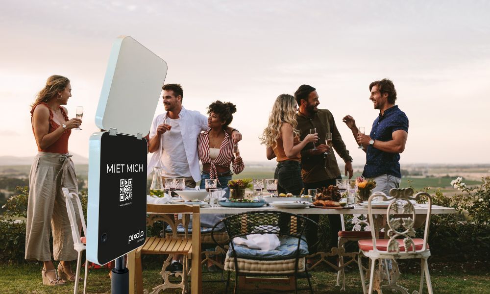 Digitale Fotoboxen wie pixolo eignen sich besonders gut für den Outdoor Einsatz, da sie kompakt sind und flexibel platziert werden können.
